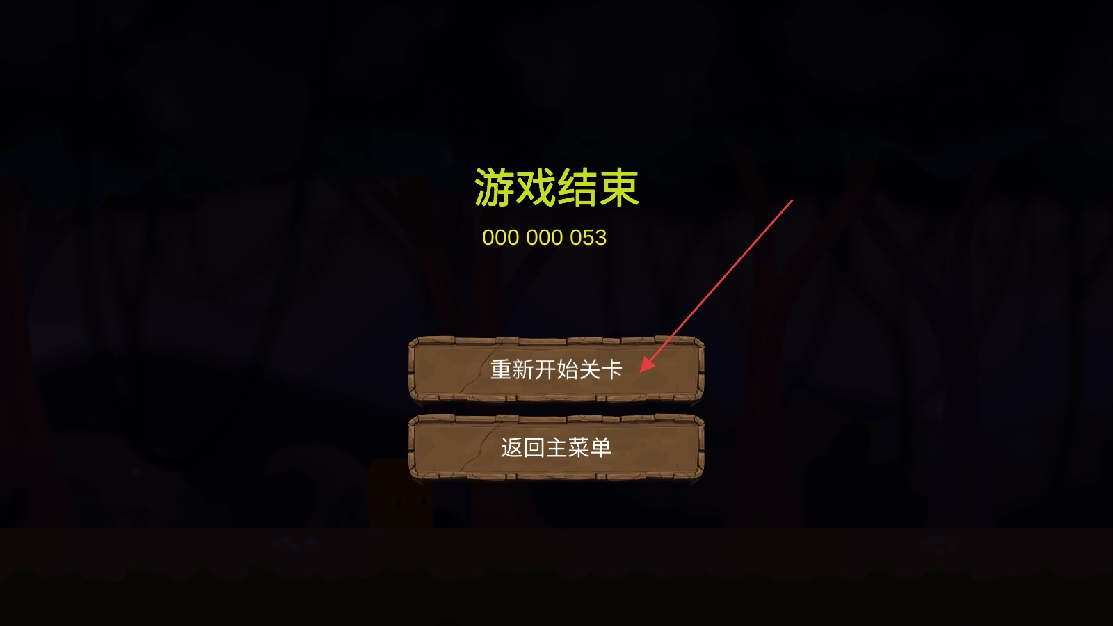 3、要是游戏失败,在出现游戏结束提示之后,能够点击【重新开始关卡】按钮,对当前关卡进行再次挑战。