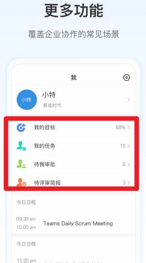 3、在“我”的页面点击,即可查看任务、日程、审批等内容,操作简便且直观,适合企业日常协作管理。