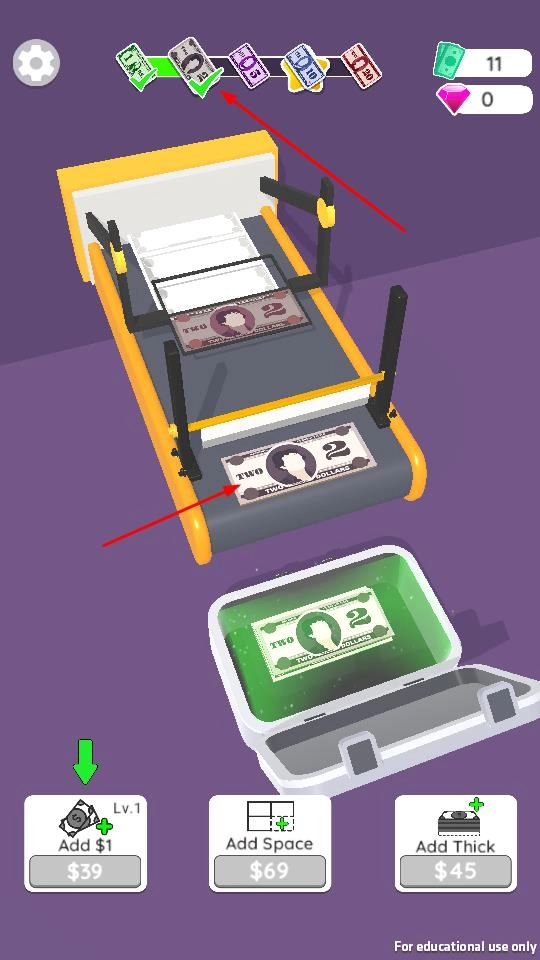 《印钞大师》是一款聚焦模拟印钞完整流程的趣味休闲游戏。在游戏里,玩家将一步步成长为专业的印钞大师。通过完成设计钞票样式、进行印刷操作、严格质检把关以及开展销售工作等一系列任务,持续积累财富并提高自身地位。游戏借助手机屏幕,引导玩家熟悉印钞的每一步操作,从前期深入研究市场需求以及价格的波动情况,进而确定适配的钞票种类和合理定价。