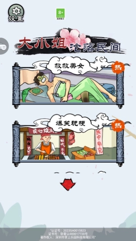 《大小姐沦落民间》是一款充满古典韵味的益智解谜手机游戏。在游戏里,玩家将成为一名勇敢的探索者,核心目标是解救被困在不同关卡中的大小姐。游戏巧妙融合了推理、记忆、数学等多种需要深度思考的元素,全方位考验玩家的智力与思维能力,同时还能让玩家沉浸在妙趣横生的剧情以及充满生活气息的民间场景之中。游戏画面制作精良,以古典风格为基调,细节之处精致绚丽,能让玩家仿佛真切置身于古代的环境里。其玩法新颖独特,关卡设计丰富多样,十分适合喜爱古典文化且热衷于智力挑战的玩家前来体验。