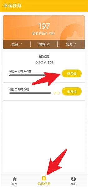 在幸运任务页面能够查看每日任务的进度情况,只要完成答题数量相关任务,就可以领取到更多的奖励。