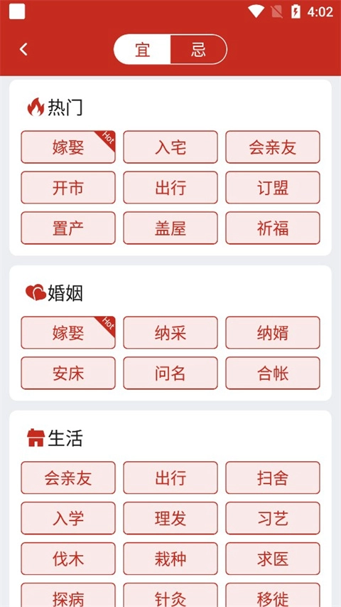 借助八字、五行、天干地支等传统占卜术数,来判定每日的适宜与禁忌事项。