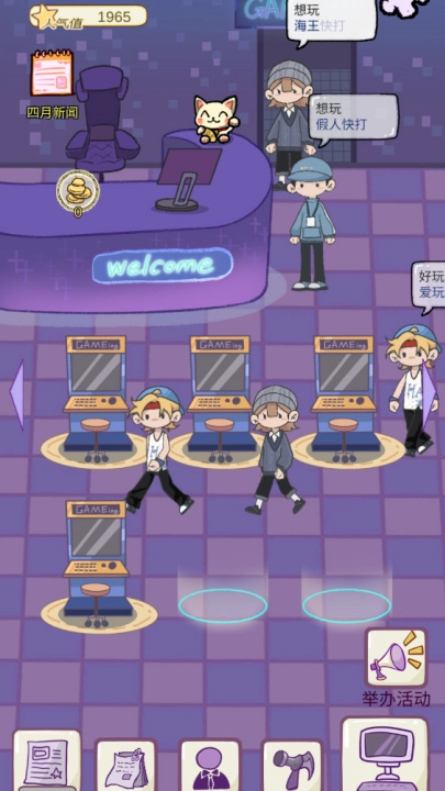 可以通过点击特定按钮来购买新游戏,丰富游戏厅的游戏种类,让顾客有更多选择。