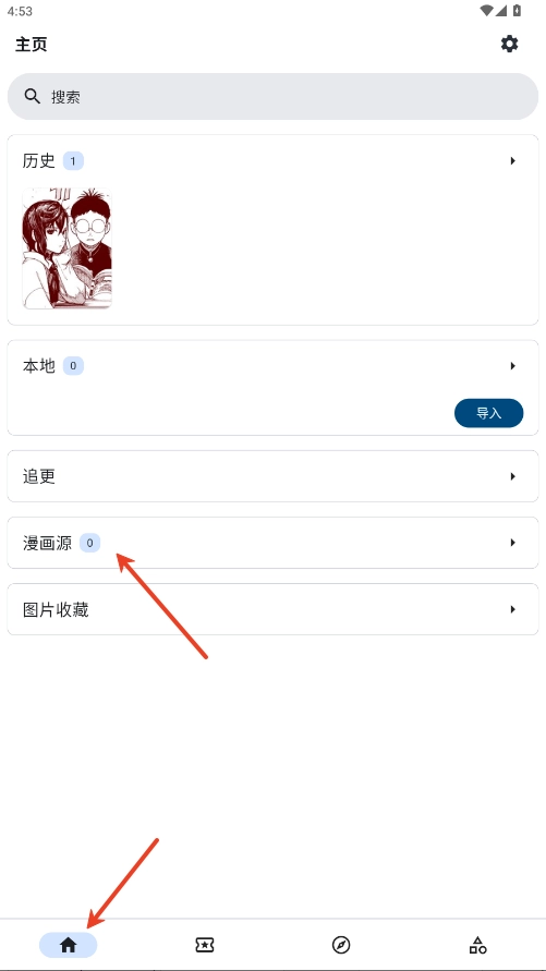 1. 于主页位置点击漫画源。