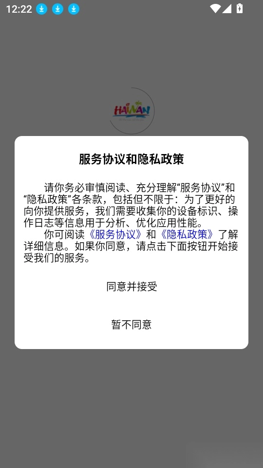 首先打开应用点击“同意并接受”按钮来进入中。