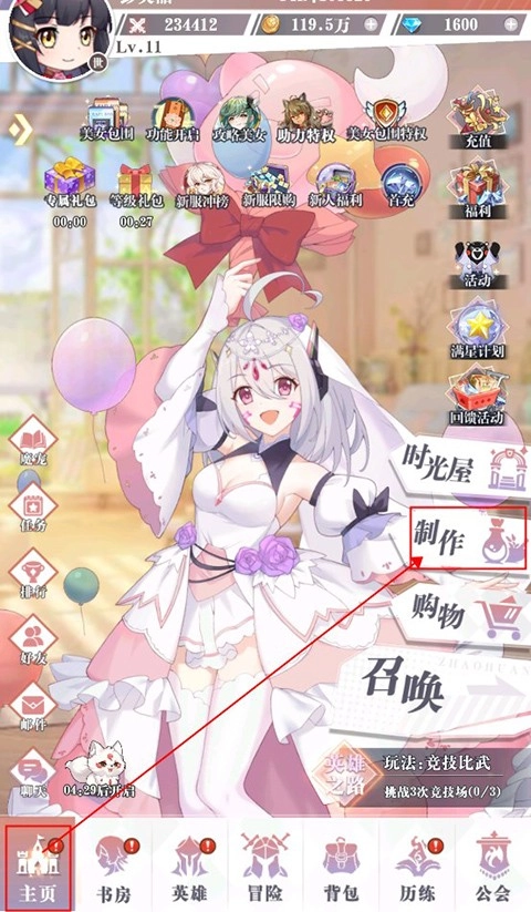 玩家点击左下角的“主页”按钮,接着点击右侧的“制作”选项,就能进入合成页面了。