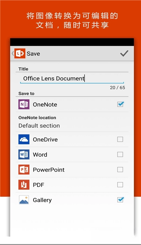 灵活的存储选项:扫描文件时能自主挑选保存位置,不仅支持本地存储以便快速查阅,还可以同步到OneDrive、OneNote,从而满足云端备份和办公协作的需求。