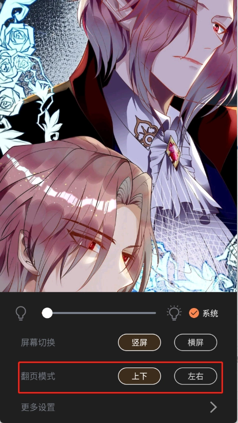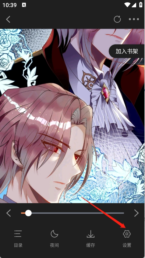 进入漫画阅读页面后,点击屏幕任意位置,再点击底部栏的设置。