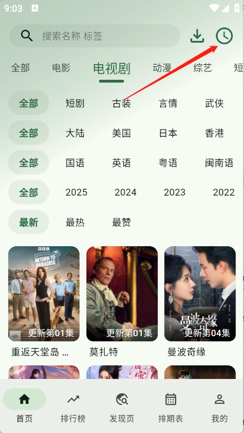 点击右上角的历史。