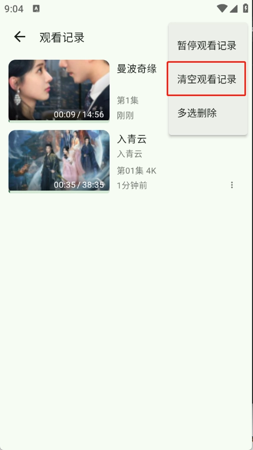 选择清空观看记录即可。