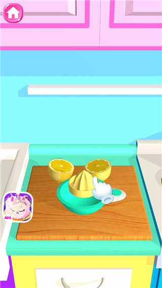 3、然后进入游戏,用刀将柠檬切对半;
