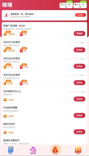 金币提现同样遵循比例规则,玩家完成指定任务即可获取金币,观看广告视频也能得到金币,当金币积攒到一定数量时就能申请提现,不过每日可提现的次数是有上限的。