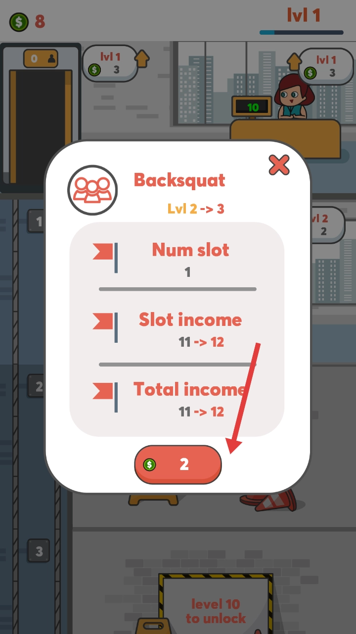 3、通过合理安排课程、提升教练专业度,让顾客达到锻炼效果,积累资金升级健身设施,解锁更多锻炼项目,顺利通关。