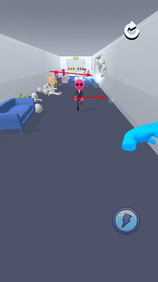 2、击飞敌人、破障碍,朝出口推进,达成关卡目标。