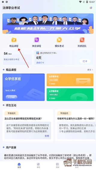 进入软件后,点击精品课程、体验课程。