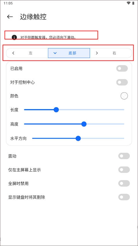 边缘触控是针对手机屏幕触碰的设置,至于侧面触发器,则需要向下滑动操作。