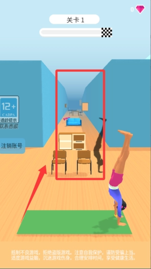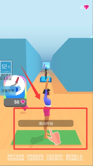 进入游戏后挑选一个健身场景,点击道具就能启动锻炼,持续完成动作可提升力量数值。