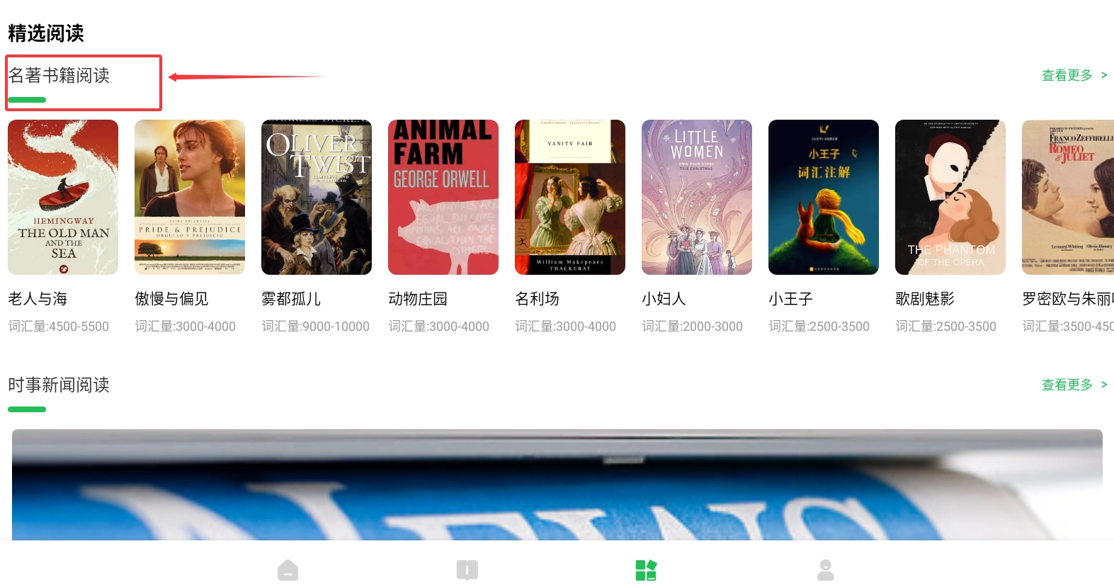 阅读板块挑选时事文章和名著片段,配有长难句剖析与词汇扩充内容,助力用户扫除理解上的障碍。