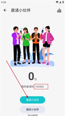 点击【邀请小伙伴】后,就能看到自己的邀请码了。
