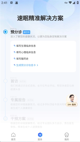 服务方面,我们会借助预分诊、首访、专属报告以及干预方案,为用户量身打造睡眠健康解决方案,同时安排24小时客服随时回应他们的需求。