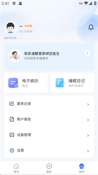 我司提供绑定医生、电子病历、睡眠日记、量表记录、用户报告、设备管理及设置等个人睡眠健康管理功能。
