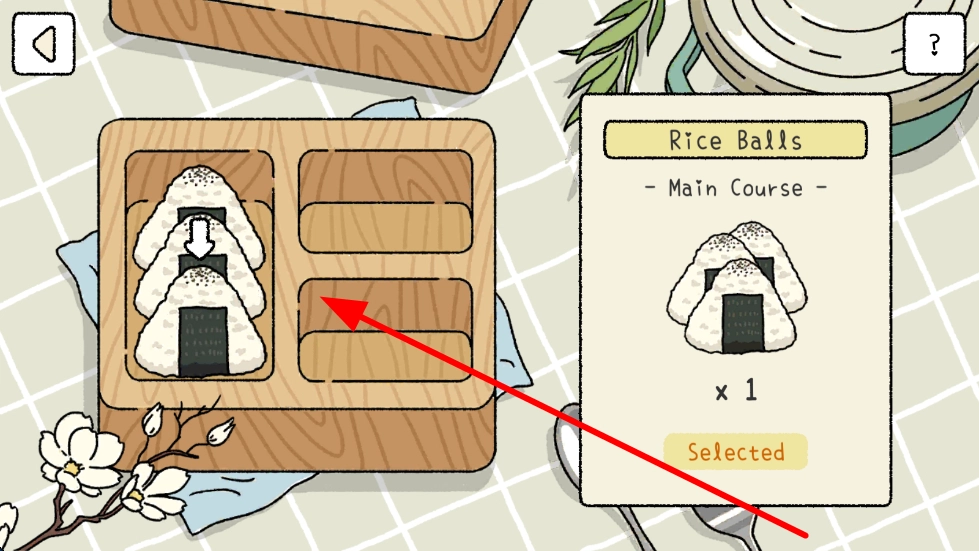 在给角色准备餐食的过程中,挑选饭团这类适宜的食物,把它们摆放到餐盒里对应的位置,待餐食全部准备妥当后,不仅能让角色品尝到美味,还能有效提升其生活体验。