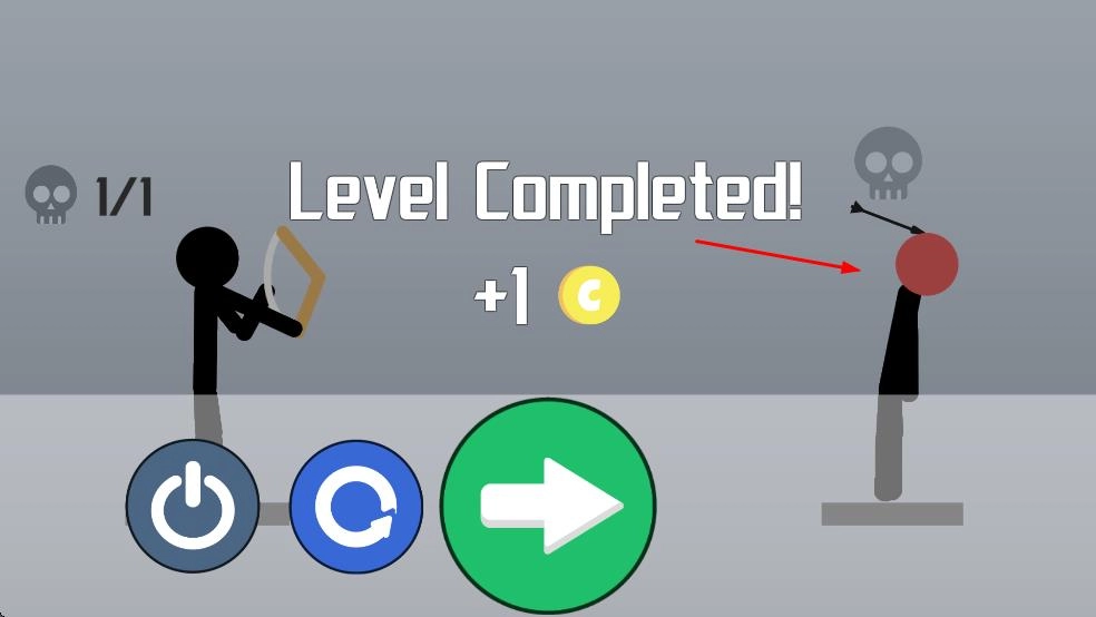 当你成功消灭所有敌人后,就会触发Level Completed的结算界面,你可以获得金币奖励,之后点击绿色箭头就能进入下一关继续挑战。