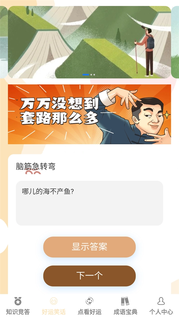 好运笑话板块:除了知识竞答,应用里还有个“好运笑话”板块。这里汇聚了不少幽默搞笑的笑话合集和脑筋急转弯,能让用户在轻松欢乐的氛围里锻炼思维,还能让笑声成为他们日常生活中的好运象征。