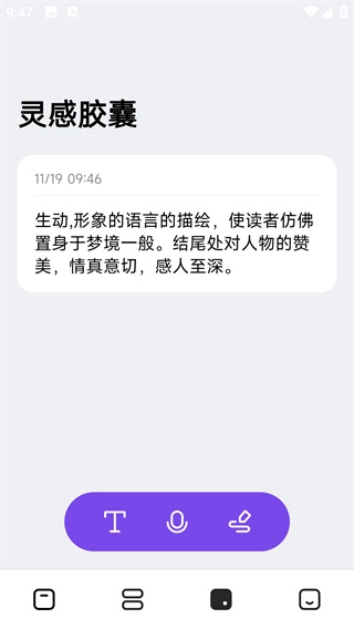 点击下方工具栏里的灵感胶囊,就能通过语音或文字模式记录灵感啦。