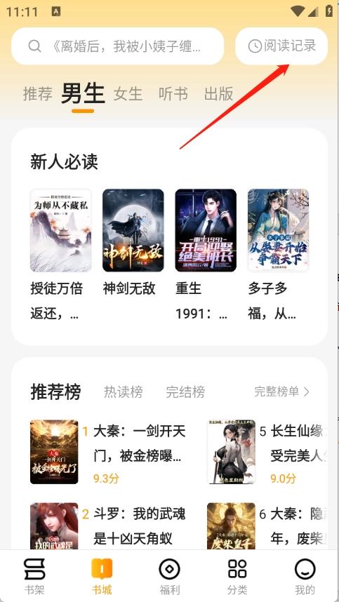 进入到首页以后点击右上角的“阅读记录”。