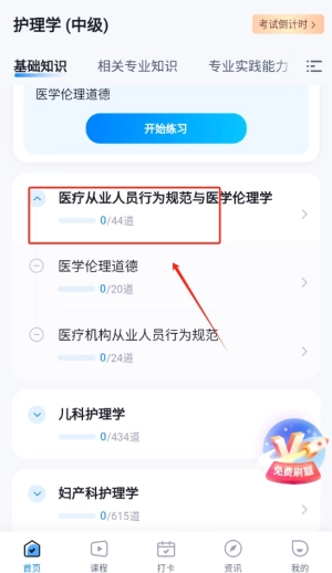 章节练习系统依据护理学科体系进行分类编排,能够按照掌握程度灵活组合练习内容与难度。