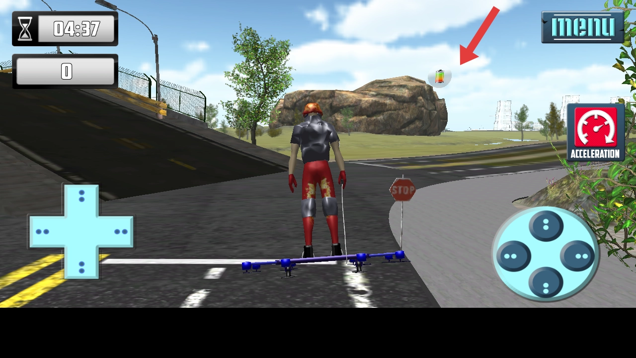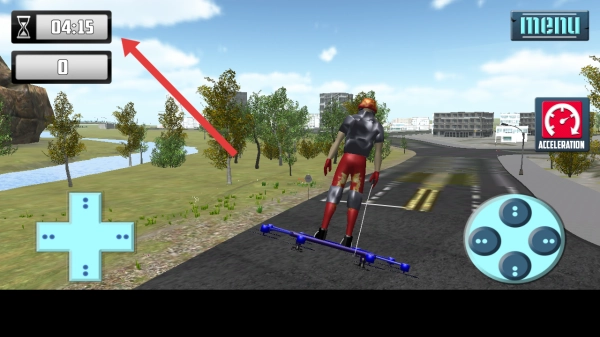 在游戏里操控角色接近空中的能量道具并完成收集,以此保持滑板的动力和运行状态,确保角色的移动能力不受影响。