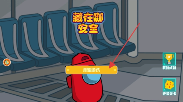 这是“藏在哪安全”游戏的启动界面,点击“开始游戏”按钮,就能进入游戏,开启你的冒险挑战。