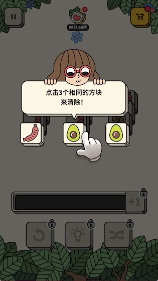 核心目标:玩家需从杂乱堆叠的方块里找出并点击三个图案相同的方块来完成消除,直到把整个面板清空或者满足关卡的特定要求。