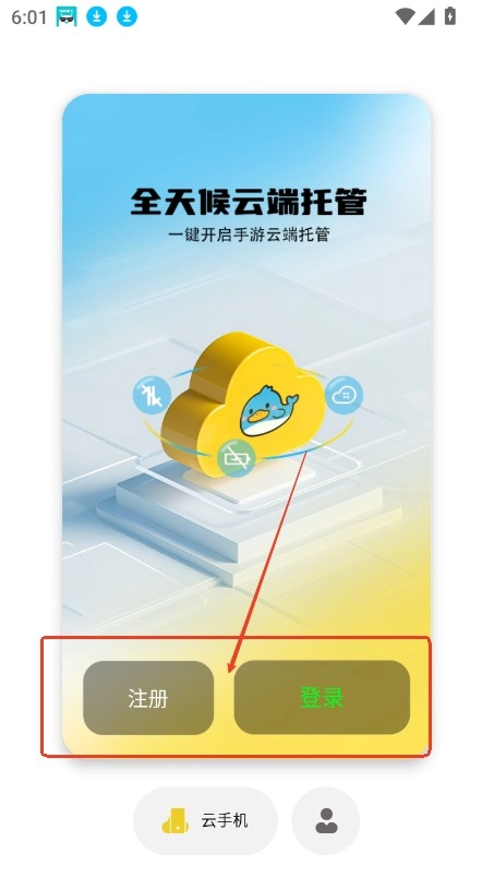 注册并登录鸭鸭鲸云手机App。