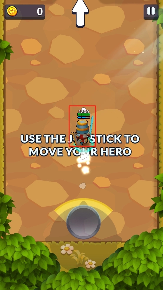 1. 进入作品,通过操控虚拟摇杆来移动英雄,顺着箭头所指方向前行,以此熟悉移动操作,为后续战斗做好准备。