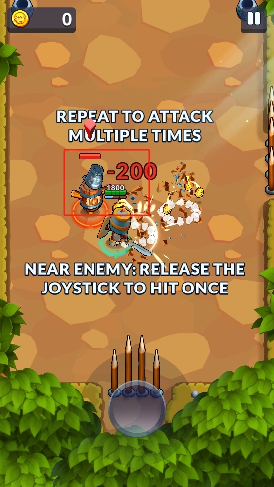 2、当靠近敌人后,松开摇杆便能发动一次攻击,持续重复此操作可实现多次攻击。成功击败敌人后,能够获取金币。在此过程中,务必留意躲避陷阱。