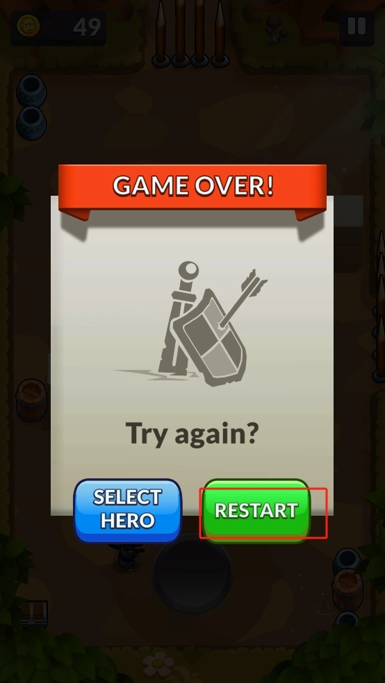 3、要是游戏失败,当出现GAME OVER界面时,我们能够点击绿色的RESTART按钮,重新开启游戏,接着进行挑战。