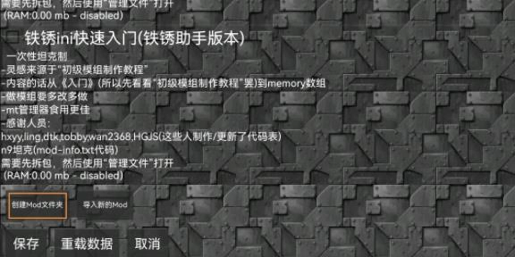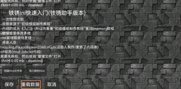 4、没找到文件夹的可以点击【创建MOD文件夹】。解压后到MOD文件夹后,在游戏里点击主界面的【模组】按钮,进入MOD加载界面。勾选你想要使用的MOD,然后点击【重载数据】,然后点击保存。如果MOD内代码有错误,在相应MOD名称下会有红色文字报错。这种情况一般玩家不会遇到。