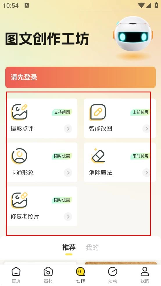 3、借助【智能改图】功能,获取专业的作品建议。运用消除魔法,修复老照片并优化图片。通过卡通形象创作趣味内容,从而提升创作力。