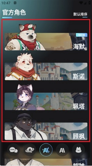2、登录后进入主界面,浏览多个可供选择的聊天角色,找到心仪目标。