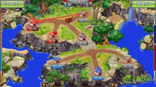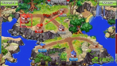 进入【Forest-1】关卡后,留意各建筑的进度数值(例如【12/30】这类形式),做好资源分配与建筑升级的规划。