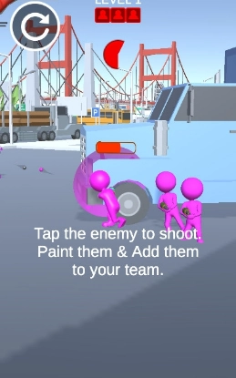 《举起手来》是一款超有趣的休闲益智游戏!游戏里会出现多个小队,采用回合制玩法,每个小队都有不同的颜色标识。玩家需要不断招募成员来壮大自己的小队,然后与其他敌人展开对战挑战,目标是成为场内人数最多且坚持到最后的队伍。游戏中还有精彩的射击对决环节,你可以瞄准并射击其他小队,消灭更多对手。这场对决刺激又紧张,玩法丰富多样,还能让你在游玩过程中感到解压放松。此外,游戏提供了各种不同的武器和道具,能帮助你更好地击败其他敌人哦!