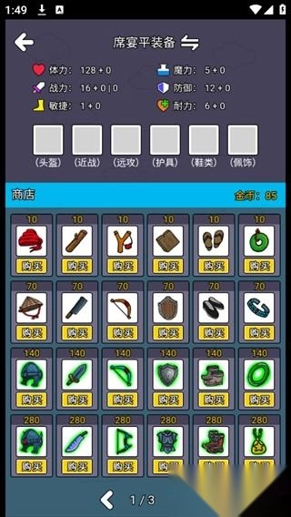 然后回到初始村镇进行刷机操作,沿着小镇一路刷机,其他事情都不用管,只要专注于刷机就行。存够金币后要及时更换装备,装备在底部的第五个位置。