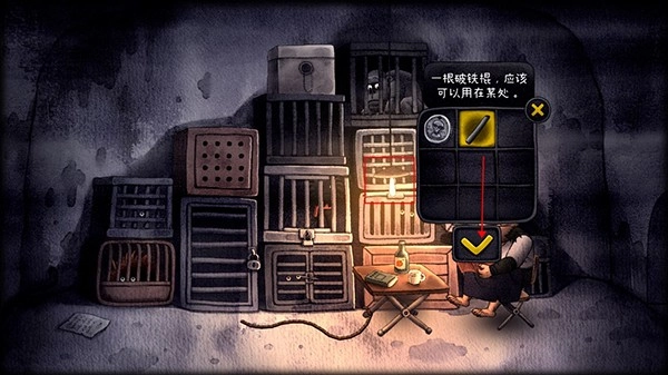 随后切换至放大镜视角,再回到外部界面,点击灯光,使用铁管将灯敲灭,灯熄灭后看守者便会离开。