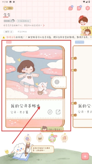 1. 来到金金界面,找到“我的公开手帐本”入口并点击,进入手帐本管理页面后,再点击“查看账本”。