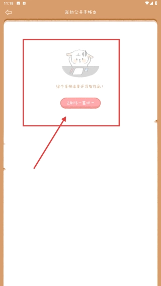 2、在空白手帐本页面,点击去制作一篇吧按钮,开启手帐创作流程,点击创建文章。