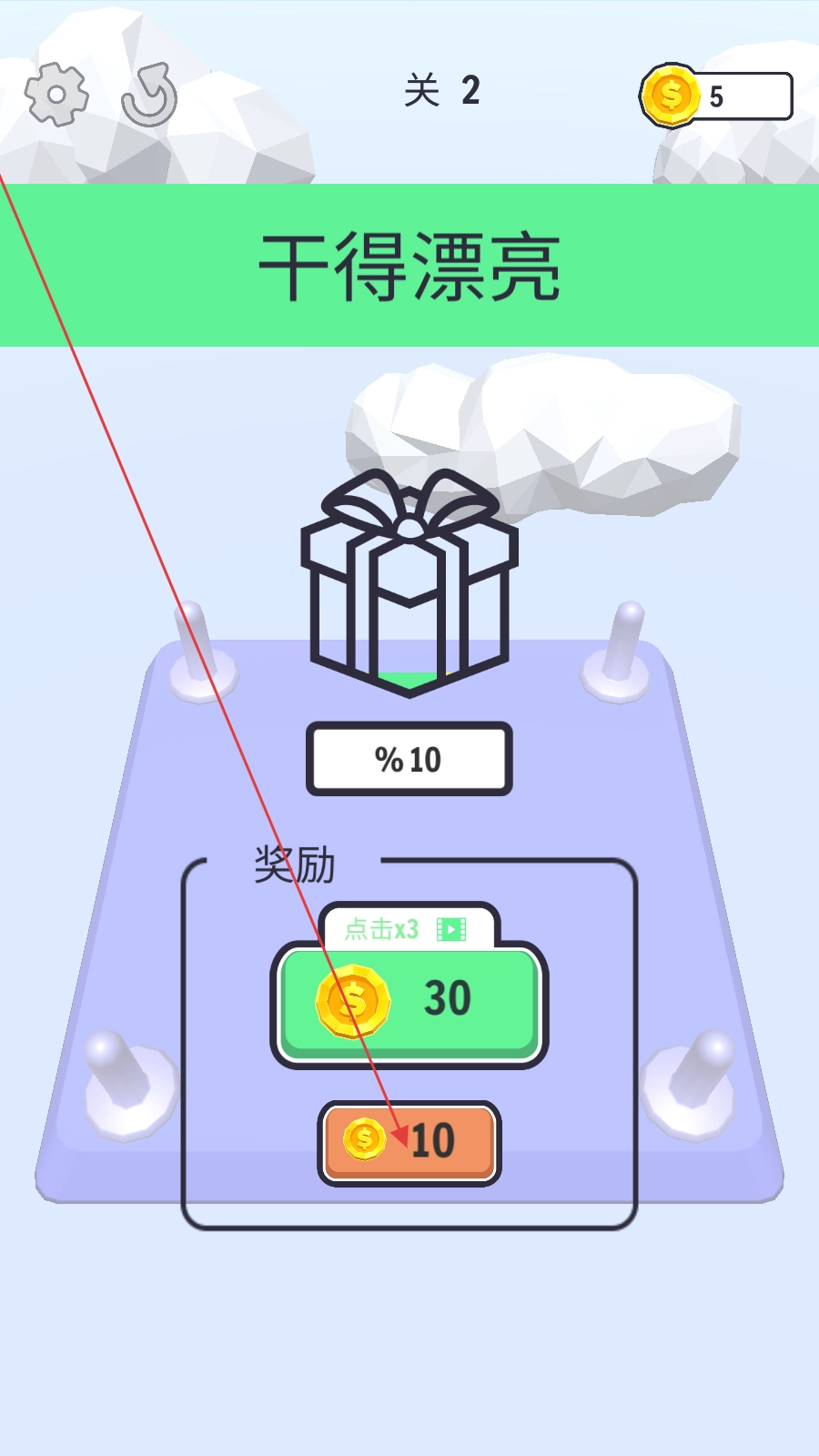 4、成功后,选【10金币】奖励,获取金币,继续挑战关卡。
