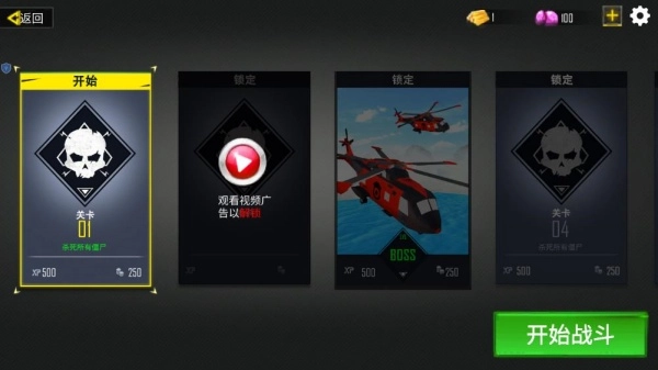 从第一关开始,先领取并了解清楚目标任务,像击杀规定数量的僵尸这类,同时把武器装备都准备妥当。