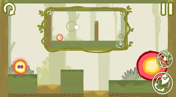 打开游戏界面后,先点击三角形的初始按钮,就能直接进入关卡;接着按照玩法说明里的操作步骤,通过点击和滑动屏幕来移动小火球,完成挑战即可。